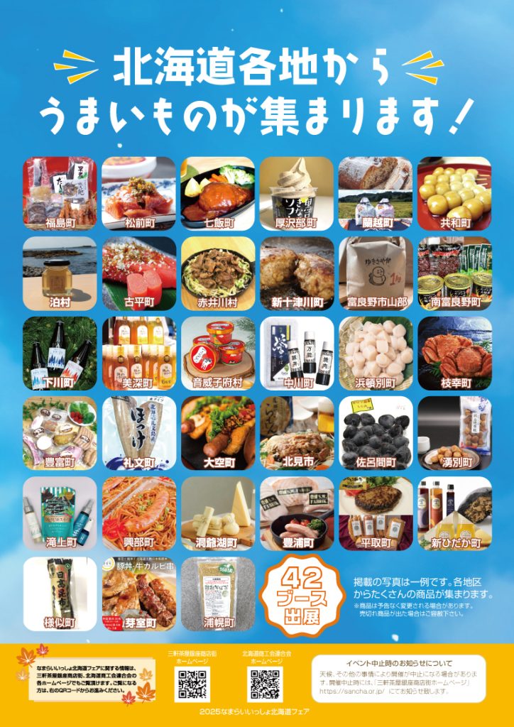 蟹・帆立・昆布・ジンギスカン・スイーツ・はちみつ・チーズ・チーズケーキ ・クラフトビール などが北海道現地の生産者と共にやって来る、人々の交流とグルメのイベントです