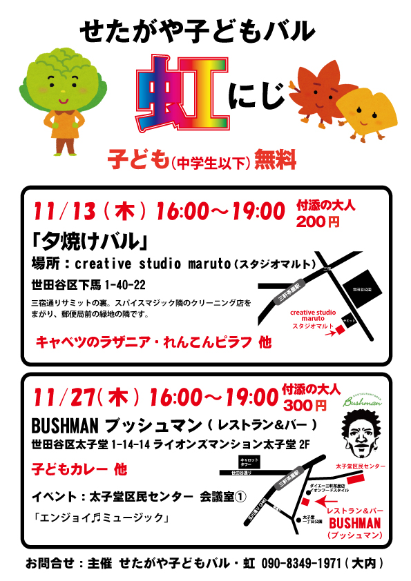 せたがや子どもバル・虹 による子ども食堂が三軒茶屋近辺で実施されます。