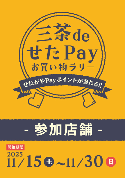 11月30日(日)まで開催中の『三茶deせたPayお買い物ラリー』の参加店舗をご紹介します。参加店舗には、イベントのポスターや参加店舗証が掲出されていますので目印にしてくださいね。