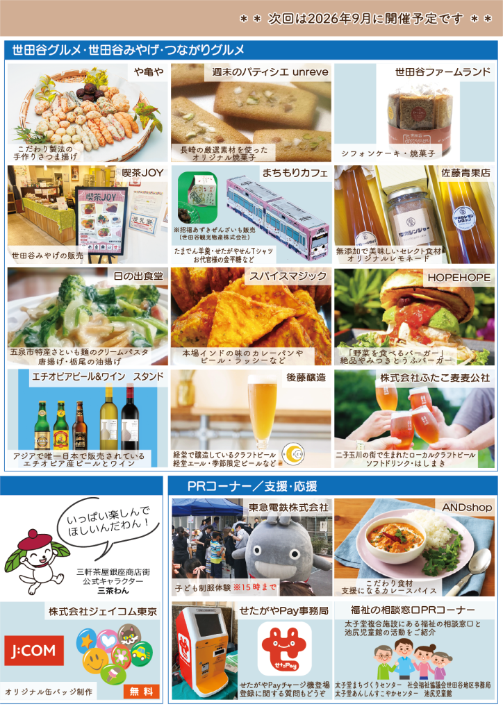 あれもこれも盛りだくさんな三茶ふれあいマルシェ、ぜひご来場くださいね。