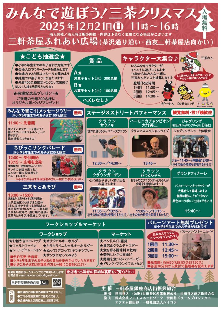 みんなで楽しい「三茶クリスマス」にしましょう!ご来場お待ちしております。