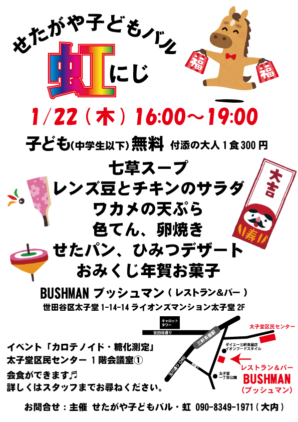 せたがや子どもバル・虹 による子ども食堂が三軒茶屋近辺で実施されます。
