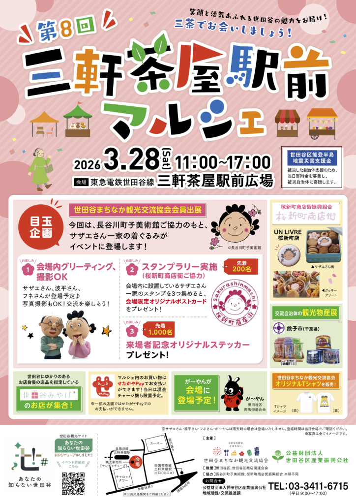 春の陽気が感じられそうな1日を、ぜひ三軒茶屋でお過ごしくださいね。