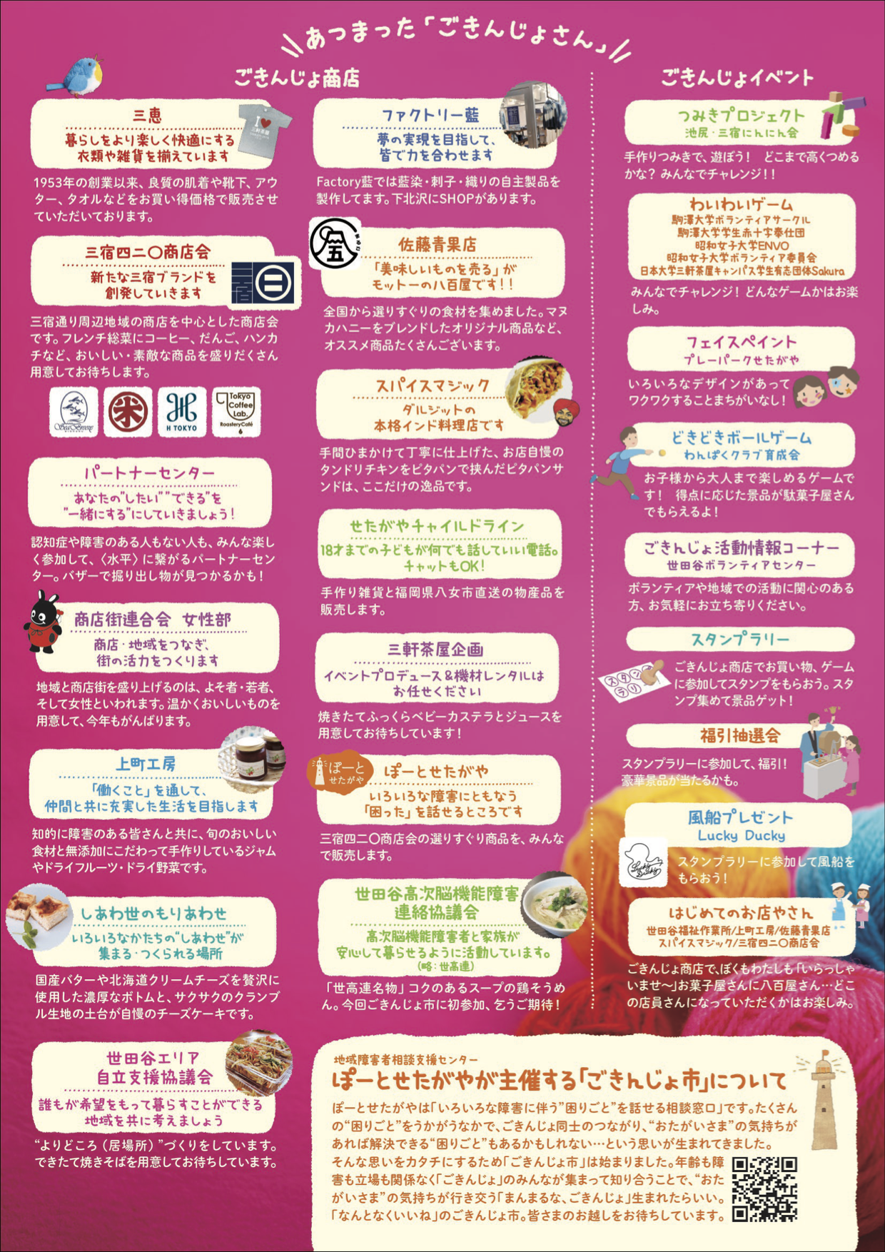 ごきんじょ市は、地域障害者相談支援センターぽーとせたがやが開催する「市」(おまつり)です。